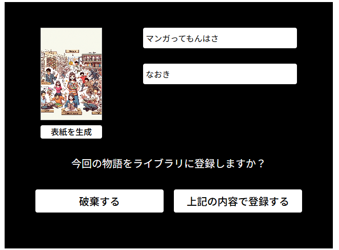 物語が完成すると、その内容に合わせてAIが表紙画像を自動生成してくれます。